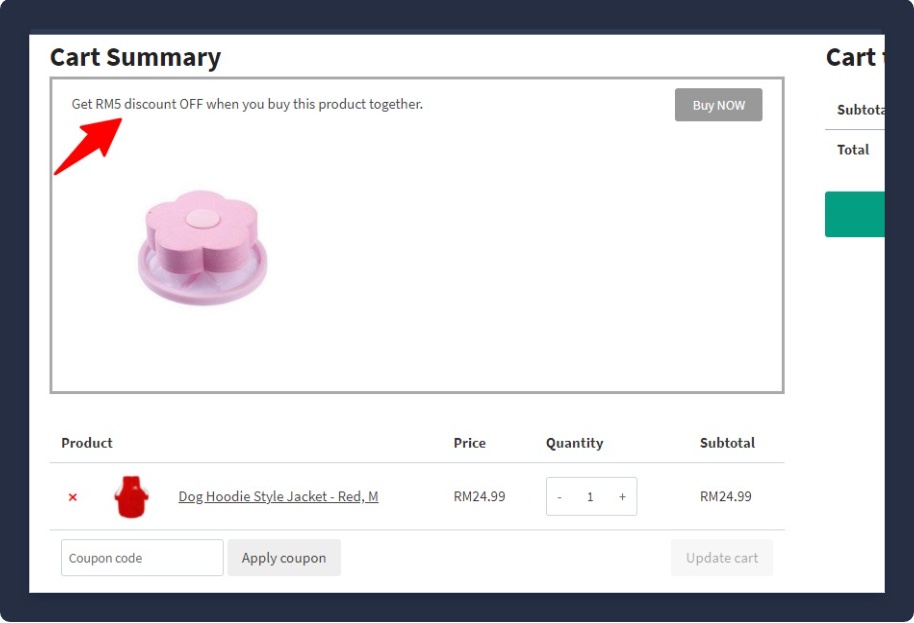 你可以根据「购物车」中的产品,例如总价或重量,创建不同的「购物车通知」。「购物车通知」的例子可以是:『再购买一种产品,获得10%折扣。』这将有助于鼓励顾客增加消费,进而提升你的业绩,是一种常见的「追加销售」(upsell)营销策略。