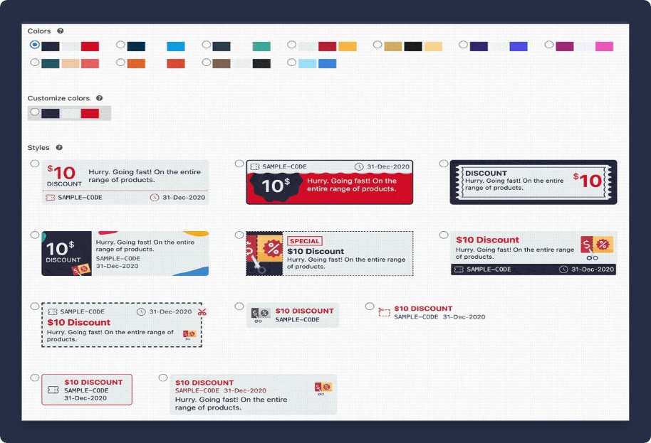 「智能优惠券」拥有最受欢迎和最完整的优惠券功能:折扣、优惠券、积分、礼品卡、产品赠品、优惠和促销活动所需的一切商业活动,都可以通过「智能优惠券」来实现,大大提高了卖家的营业额!