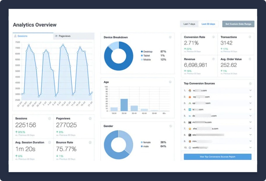 用「谷歌分析」功能来分析你的网店,这包括「电子商务追踪」,了解你的网店表现如何。另外,帮助你的网店「增加流量」,或者向你展示如何提高「销售转化率」,并提供多个非常易于理解的报告,为你的网店发展提供建议。