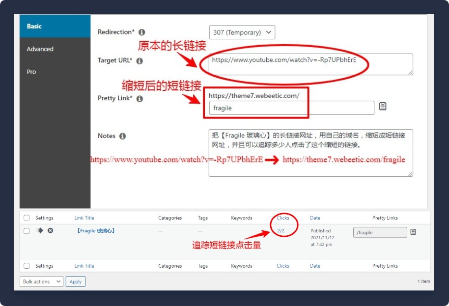 使用此「缩短器」,你不但能够使用自已的域名来美化网址,更可以做好统计的工作,来进行数据上的分析。追踪「同一链接」建立「不同来源」的统计,做A/B Test。通过优化网址,建立网店内容输出的一致性,经营好个人品牌。如这个例子:https://theme7.webeetic.com/fragile