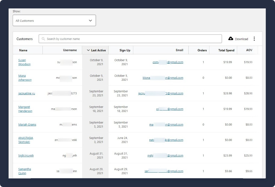 此报告主要提供「注册客户」访问咱们网店和购买商品的活动,包括「订单量」、「消费额」以及「平均订单值」(Average Order Value)。
